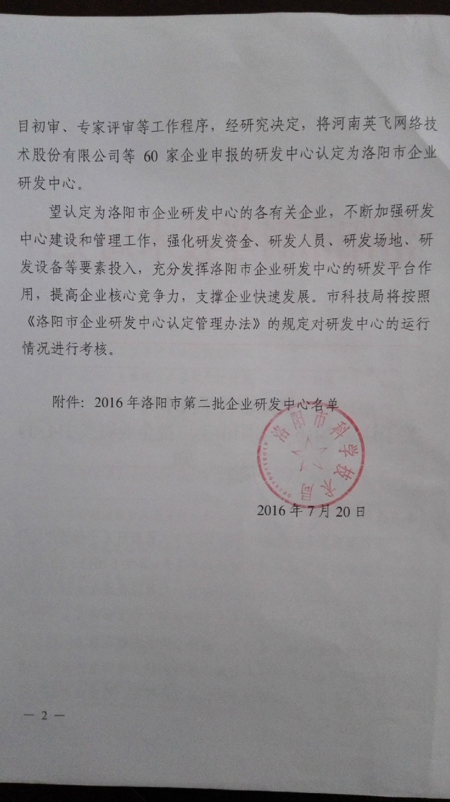 2016年8月, 公司設(shè)立的“洛陽市有機(jī)廢氣治理溶劑回收再利用企業(yè)研發(fā)中心”獲得洛陽市科技局認(rèn)定。(《洛陽市科技局關(guān)于認(rèn)定2016年洛陽市第二批企業(yè)研發(fā)中心的通知》洛市科【2016】66號(hào)文件)
